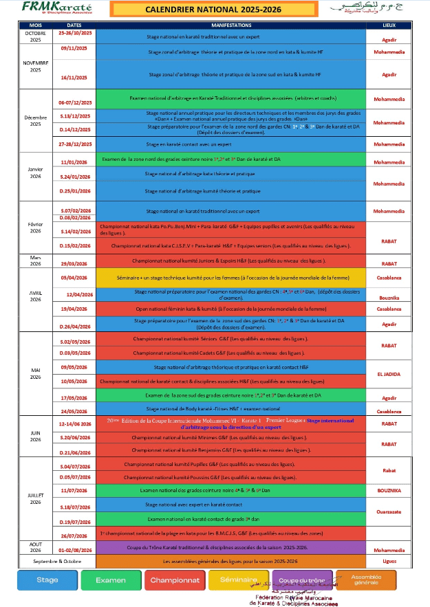Le karaté marocain continue de briller sur la scène nationale et internationale grâce à l’engagement, la discipline et la passion de nos athlètes. Ensemble, nous construisons un avenir sportif ambitieux et inspirant.